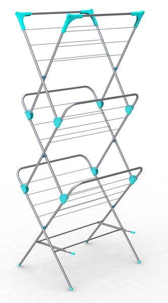 This clothes dryer is the economical alternative to an electric or gas clothes dryer and provides ample space with three tiers of durable, rust resistant steel rods. With its ultra-light, sturdy construction this dryer can be used indoors or outdoors and folds flat for easy portability and storage.